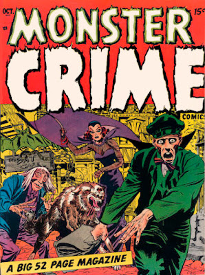 An expensive book for the time (a whole fifteen cents), Monster Crime Comics #1 (October, 1952) was a rarity at the time, with 52 pages for its one and only issue from Hillman (who published comics from 1940 to 1953).